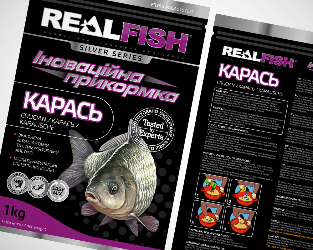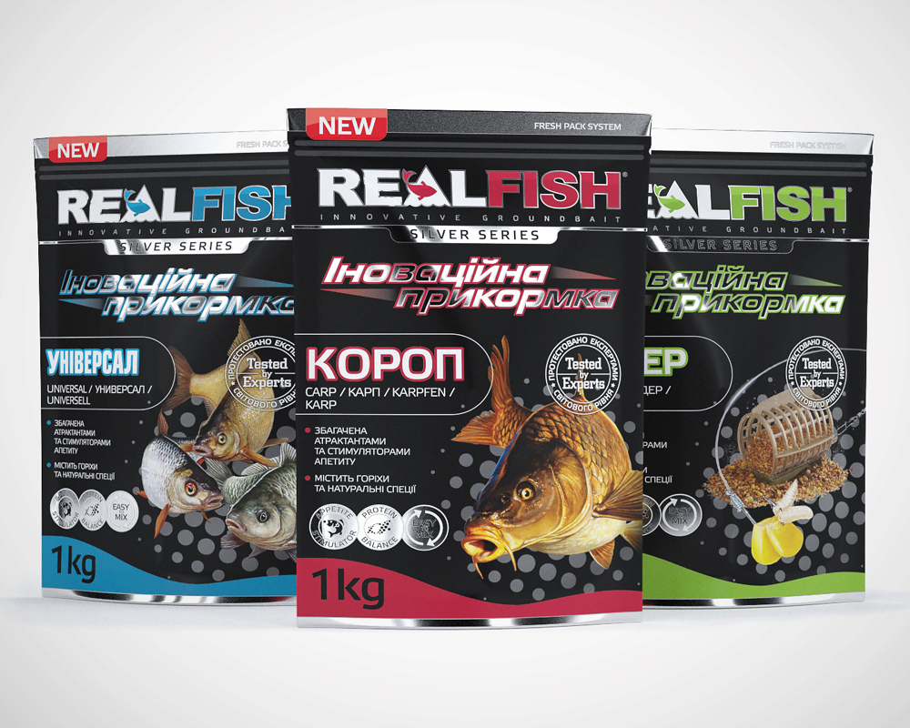 - Создание дизайна упаковки для дойпаков серии инновационных рыболовных прикормок